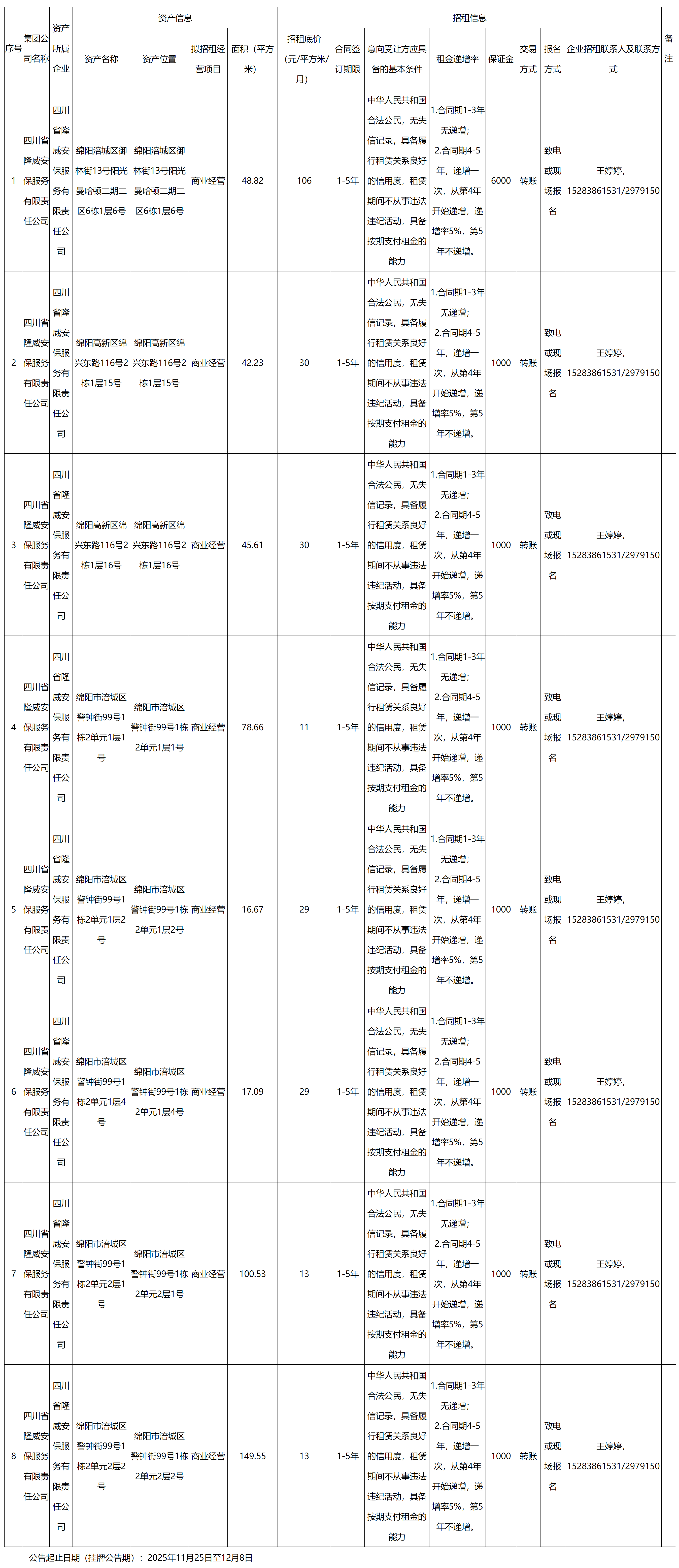 四川省隆威安保服務有限責任公司企業(yè)資產(chǎn)出租公告