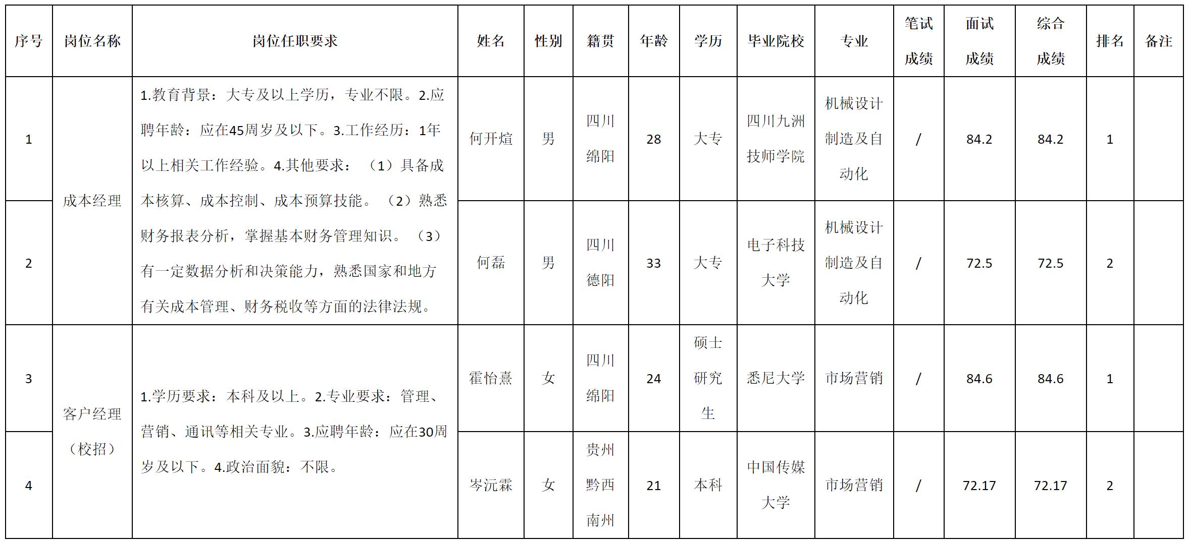 根據(jù)四川九州電子科技股份有限公司發(fā)布的招聘公告及招聘相關(guān)規(guī)定,現(xiàn)將測試成績予以公示。