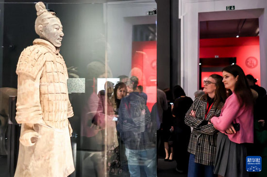 當(dāng)日,“秦漢文明展覽”預(yù)展在匈牙利布達(dá)佩斯美術(shù)館舉行。本次展覽薈萃陜西多家文博機(jī)構(gòu)的精美展品,涵蓋秦兵馬俑、漢代陶俑等具有代表性的精品文物。
