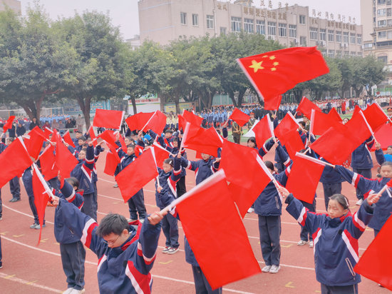 紅旗飄揚凝斗志,誓言鏗鏘表決心