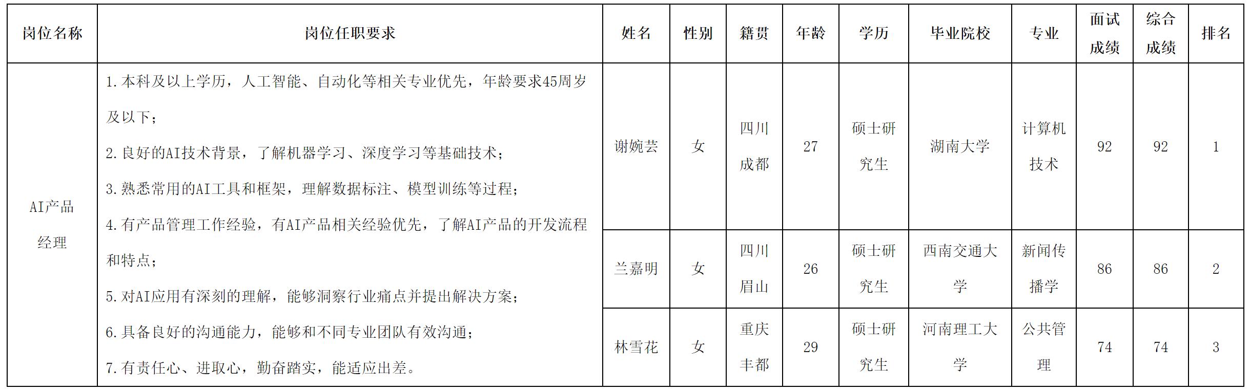 根據(jù)四川長虹虹微科技有限公司發(fā)布的招聘公告及招聘相關(guān)規(guī)定,現(xiàn)將測試成績予以公示。
