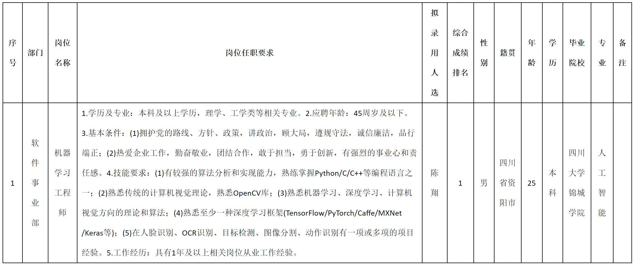 根據四川九州光電子技術有限公司發(fā)布的招聘公告及招聘相關規(guī)定,經測試、考察、體檢等程序,擬錄用奐智藍等2名同志到四川九州光電子技術有限公司工作,現予以公示,具體情況如下: