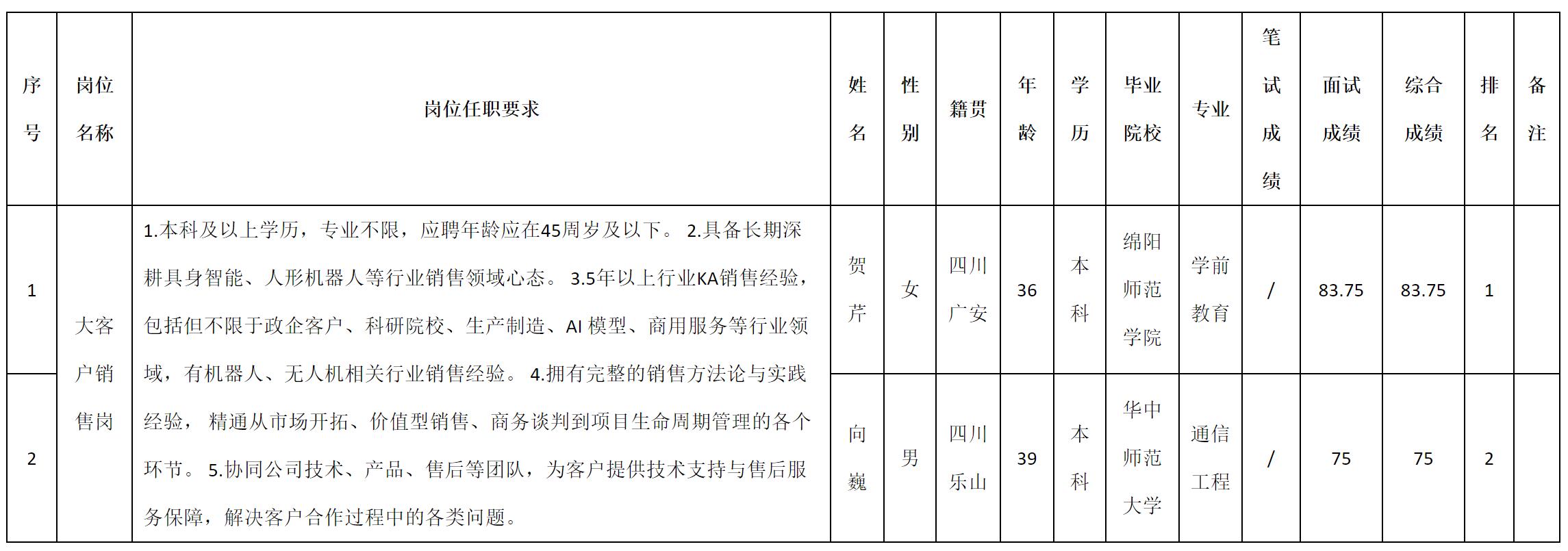 根據(jù)四川九洲投資控股集團(tuán)有限公司軟件與數(shù)據(jù)智能軍團(tuán)發(fā)布的招聘公告及招聘相關(guān)規(guī)定,現(xiàn)將測(cè)試成績(jī)予以公示。