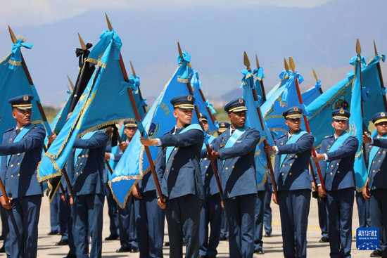 11月27日,在委內(nèi)瑞拉馬拉凱市的解放者空軍基地,空軍部隊(duì)軍人列隊(duì)參加空軍成立105周年紀(jì)念活動(dòng)。新華社發(fā)(委內(nèi)瑞拉國防部供圖)