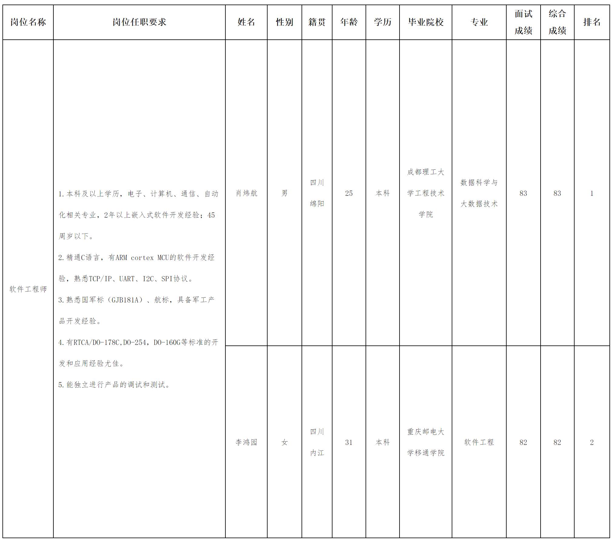 根據(jù)四川華豐科技股份有限公司發(fā)布的招聘公告及招聘相關(guān)規(guī)定,現(xiàn)將測(cè)試成績(jī)予以公示。