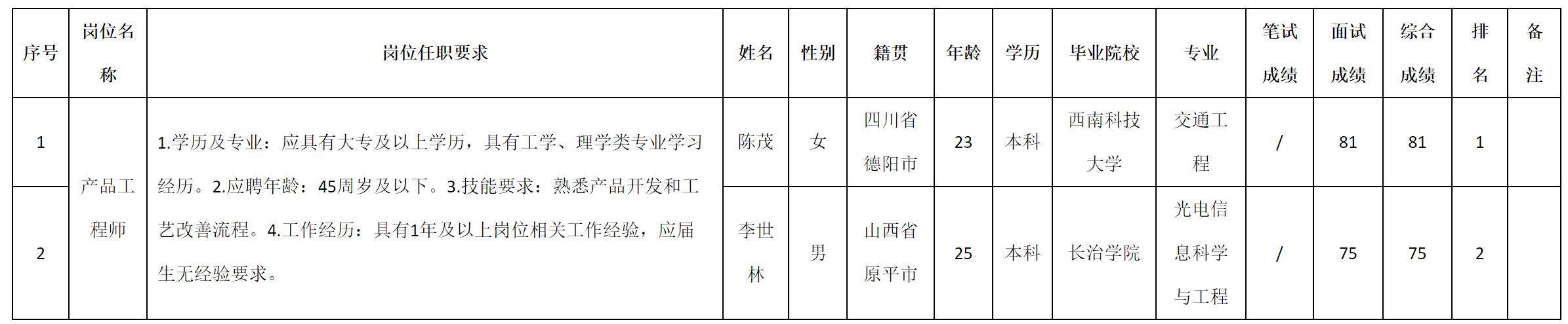 根據(jù)四川九華光子通信技術(shù)有限公司發(fā)布的招聘公告及招聘相關(guān)規(guī)定,現(xiàn)將測試成績予以公示。