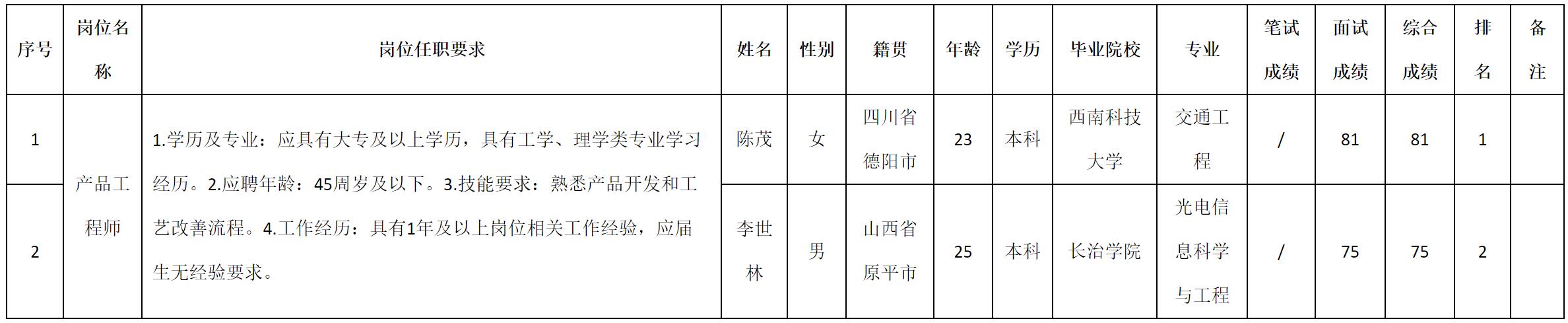 根據(jù)四川九華光子通信技術(shù)有限公司發(fā)布的招聘公告及招聘相關(guān)規(guī)定,現(xiàn)將測試成績予以公示。