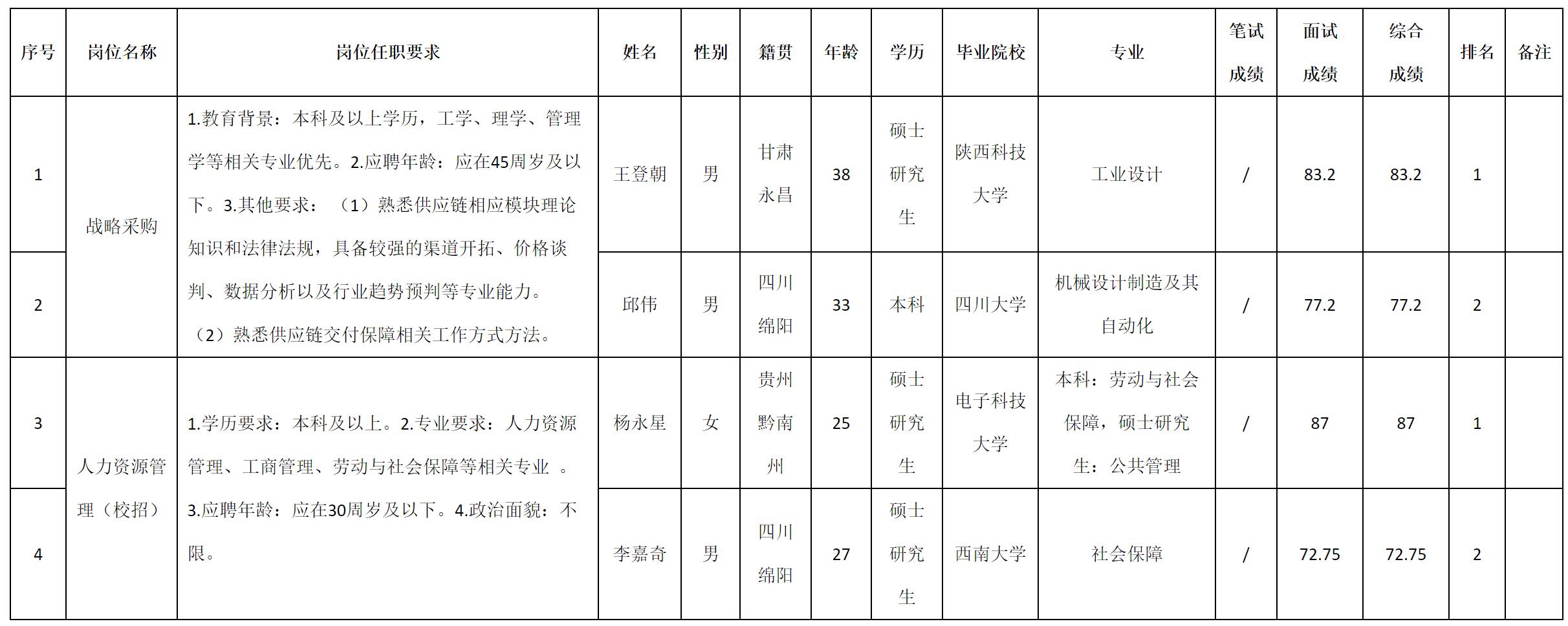 根據(jù)四川九州電子科技股份有限公司發(fā)布的招聘公告及招聘相關(guān)規(guī)定,現(xiàn)將測(cè)試成績予以公示。