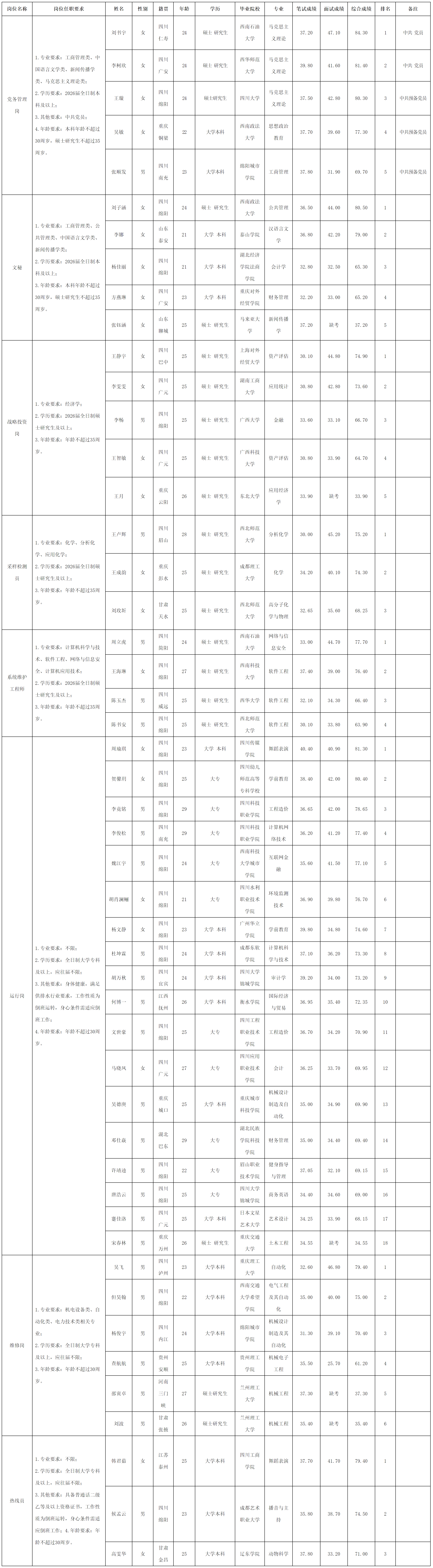 根據(jù)綿陽市水務(wù)(集團(tuán))有限公司發(fā)布的招聘公告及招聘相關(guān)規(guī)定,經(jīng)筆試、面試等程序,現(xiàn)將筆試(面試)成績予以公示。