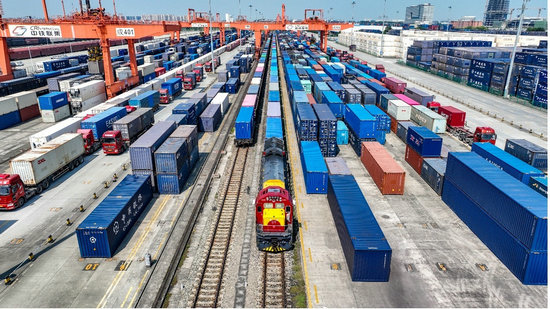 11月12日,一列滿(mǎn)載55個(gè)集裝箱的中歐班列從成都國(guó)際鐵路港鳴笛啟程。目前,成都國(guó)際班列境內(nèi)外輻射站點(diǎn)已達(dá)131個(gè)。