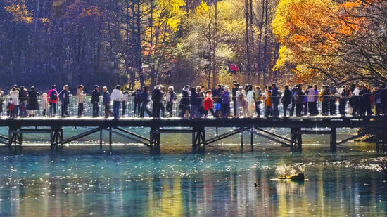 在高鐵、高速助力下,九寨溝景區(qū)年度游客人次不斷創(chuàng)新高,11月22日9時(shí)首次突破700萬(wàn)人次大關(guān)。
