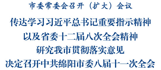 會議決定,今年12月上旬召開中共綿陽市委八屆十一次全會,深入貫徹黨的二十屆四中全會精神,認(rèn)真落實省委十二屆八次全會精神,研究關(guān)于制定綿陽市國民經(jīng)濟和社會發(fā)展第十五個五年規(guī)劃的建議。