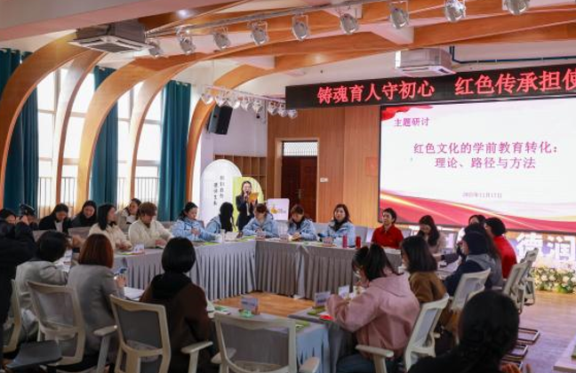 在綿陽師范學(xué)院教育學(xué)院教工第二黨支部書記華正宏的主持下,與會人員圍繞“紅色文化的學(xué)前教育轉(zhuǎn)化”展開深度研討:一探“資源挖掘”,共識是深耕紅色文化內(nèi)核,拓展多元載體,建立紅色資源庫;二探“轉(zhuǎn)化落地”,強調(diào)遵循幼兒認知規(guī)律,將紅色精神轉(zhuǎn)化為游戲、童謠等具象體驗;三探“成效顯現(xiàn)”,提出從行為與情感雙維度捕捉育人成效。