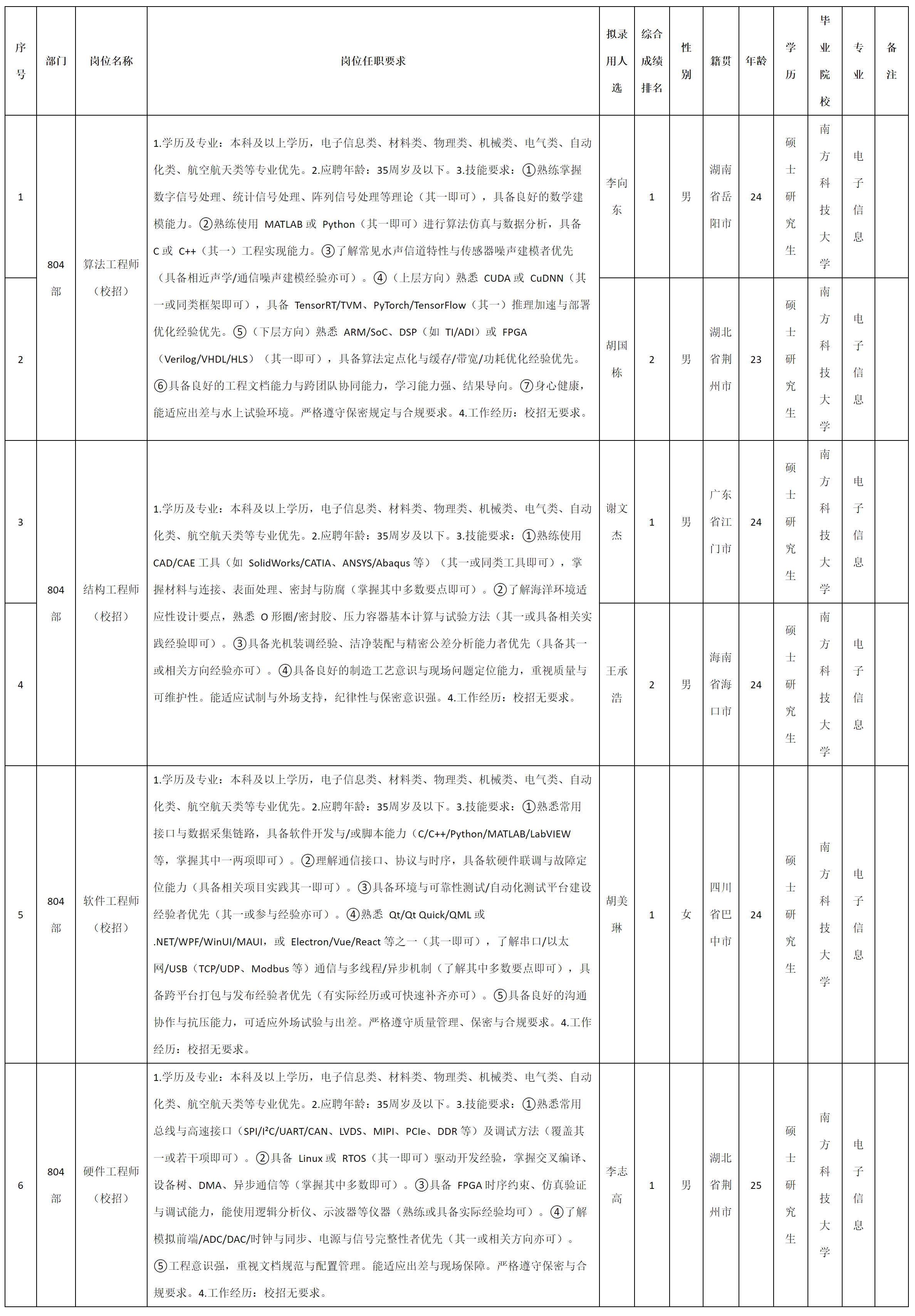根據(jù)四川九洲電器集團(tuán)有限責(zé)任公司發(fā)布的招聘公告及招聘相關(guān)規(guī)定,經(jīng)測試、考察、體檢等程序,擬錄用李向東等6名同志到四川九洲電器集團(tuán)有限責(zé)任公司工作,現(xiàn)予以公示,具體情況如下:
