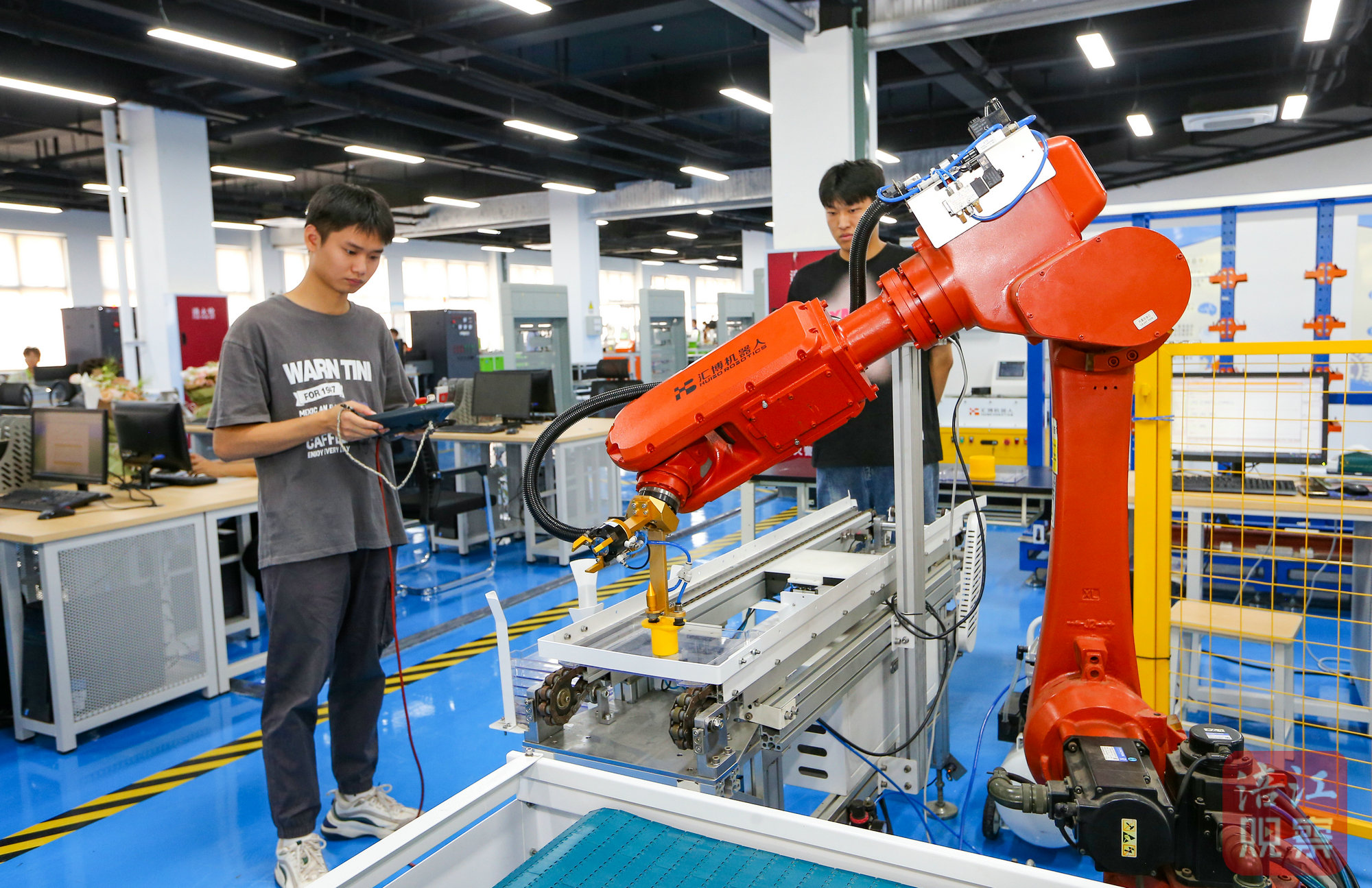 資料圖。綿陽職業(yè)技術(shù)學(xué)院學(xué)生正在智能制造學(xué)院自動(dòng)化實(shí)訓(xùn)基地實(shí)習(xí)操作。涪江觀察記者 蒲滔/攝