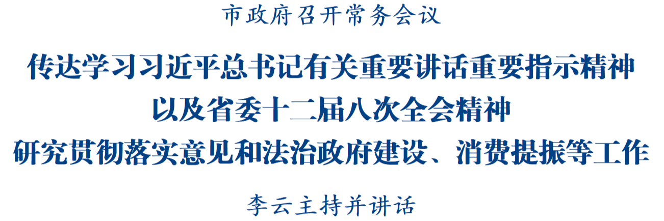 12月3日,市政府召開第123次常務(wù)會(huì)議,傳達(dá)學(xué)習(xí)習(xí)近平總書記有關(guān)重要講話重要指示精神以及省委十二屆八次全會(huì)精神,研究貫徹落實(shí)意見和法治政府建設(shè)、消費(fèi)提振等工作。市委副書記、市長李云主持會(huì)議并講話。