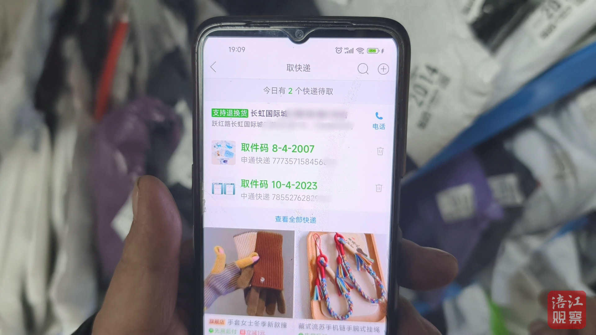 為驗(yàn)證取件流程,記者下單后將包裹寄往涪城區(qū)長(zhǎng)虹國(guó)際城,取件時(shí),驛站工作人員直接引導(dǎo):“你取快遞用拼多多掃這個(gè)碼。”