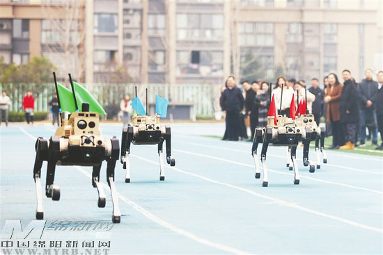 1月23日,中國(綿陽)科技城首屆人形機器人運動會上,四足機器人在比賽。記者 陳冬冬 攝