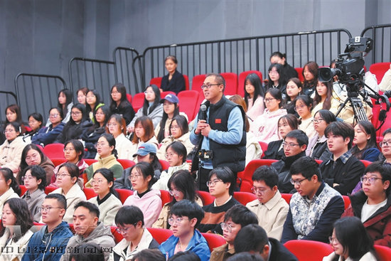 四川省政府文史館特約研究員、綿陽市中醫(yī)醫(yī)院主任中醫(yī)師沈其霖在公益講座現(xiàn)場。記者 陳冬冬 攝