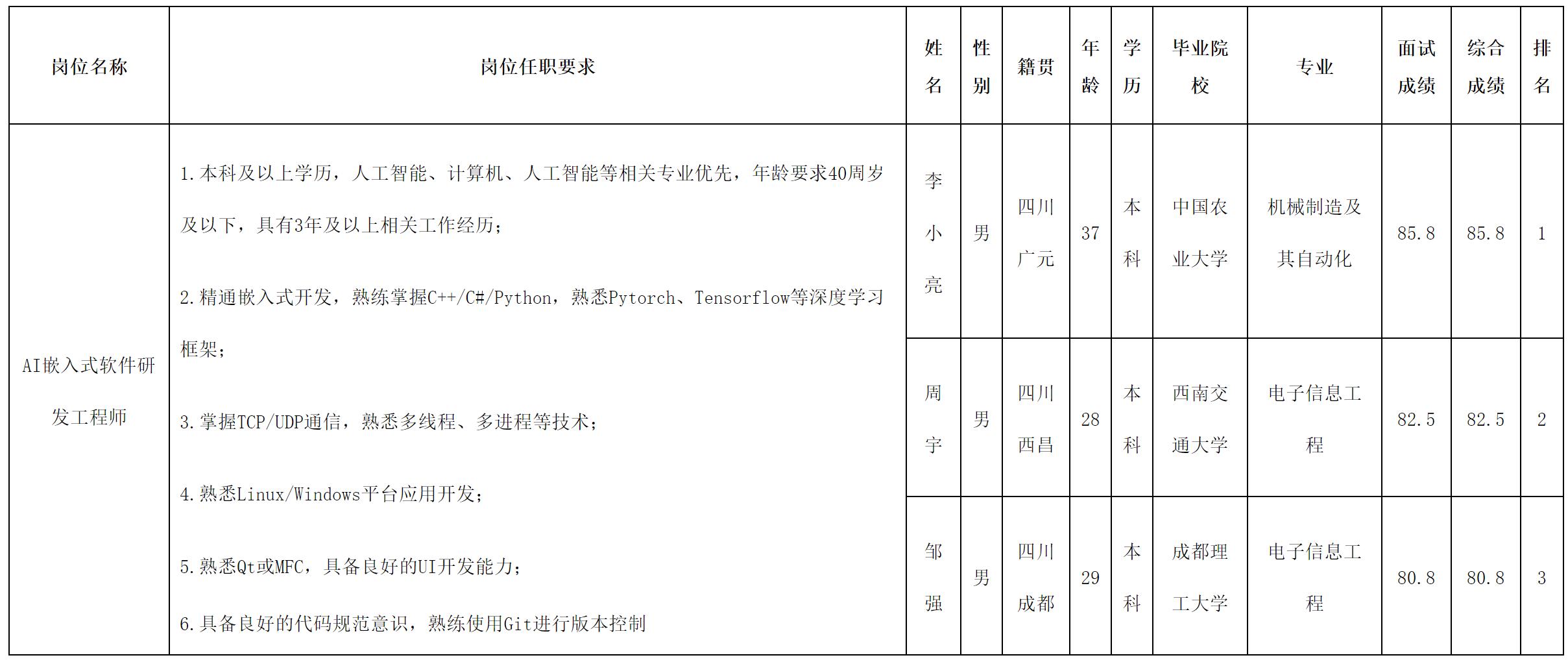 根據(jù)四川長虹虹微科技有限公司發(fā)布的招聘公告及招聘相關(guān)規(guī)定,現(xiàn)將測試成績予以公示。