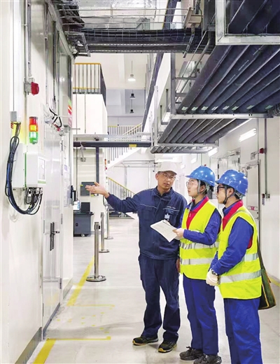 12月2日,“科技城電管家”穿梭于廠房與配電室之間,細(xì)致勘查每一處線路走向與設(shè)備負(fù)荷點。 記者 唐甜 攝