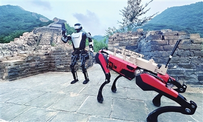 2024年8月23日,“綿陽(yáng)造”人形機(jī)器人夸父-MY、四足仿生機(jī)器狗登上長(zhǎng)城。視覺(jué)綿陽(yáng)資料圖片