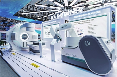 第十三屆科博會(huì)上,長(zhǎng)虹展區(qū)展出的e-Flash放射治療設(shè)備和X-Flash放射治療設(shè)備。視覺(jué)綿陽(yáng)資料圖片