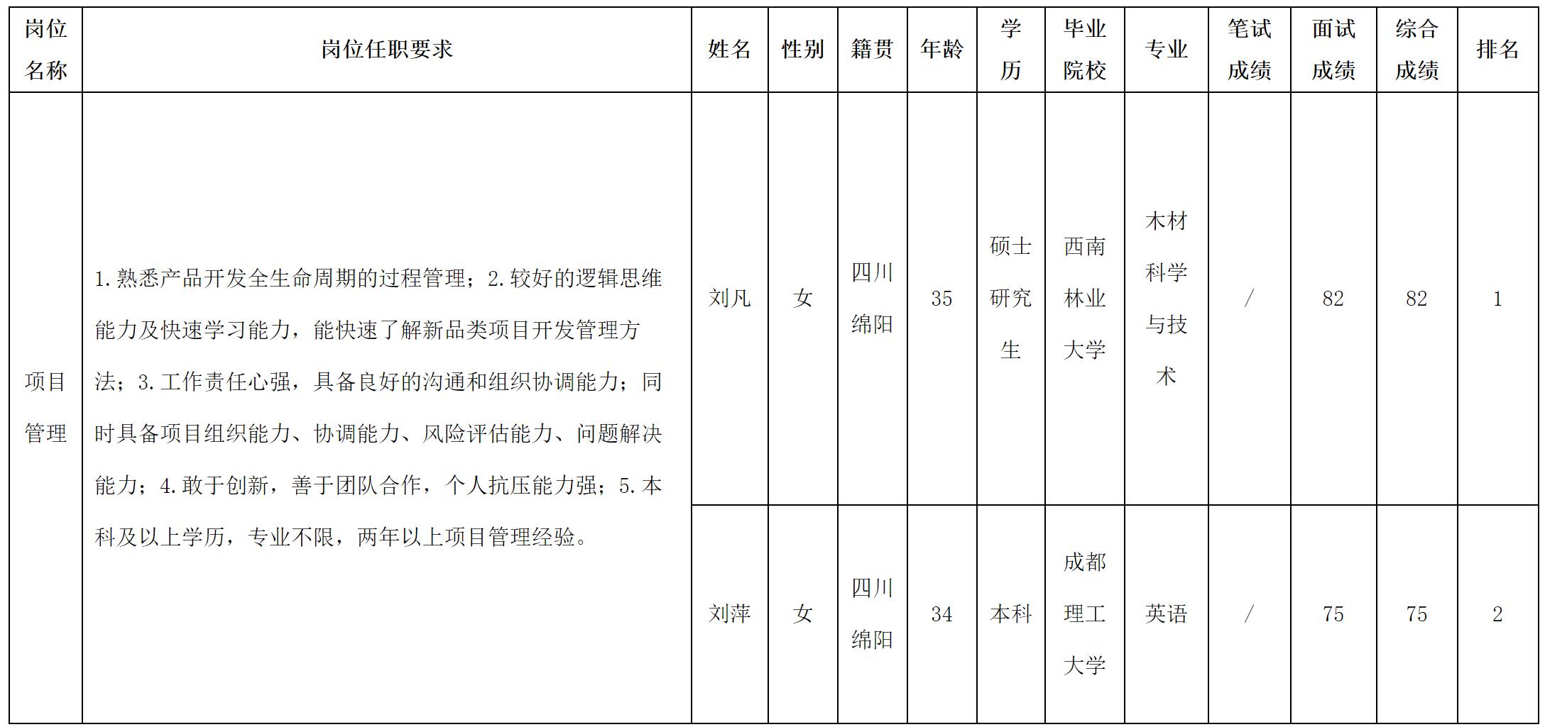 根據(jù)四川華豐科技股份有限公司發(fā)布的招聘公告及招聘相關(guān)規(guī)定,現(xiàn)將測試成績予以公示。