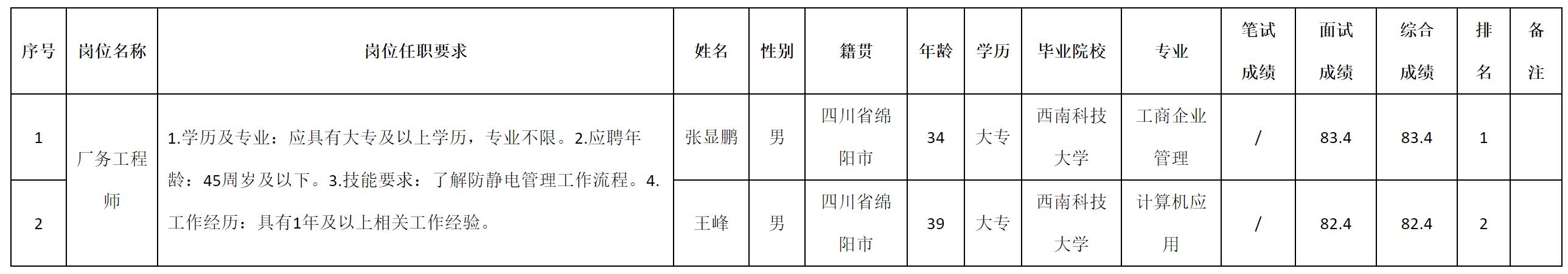 根據(jù)四川九州光電子技術有限公司發(fā)布的招聘公告及招聘相關規(guī)定,現(xiàn)將測試成績予以公示。