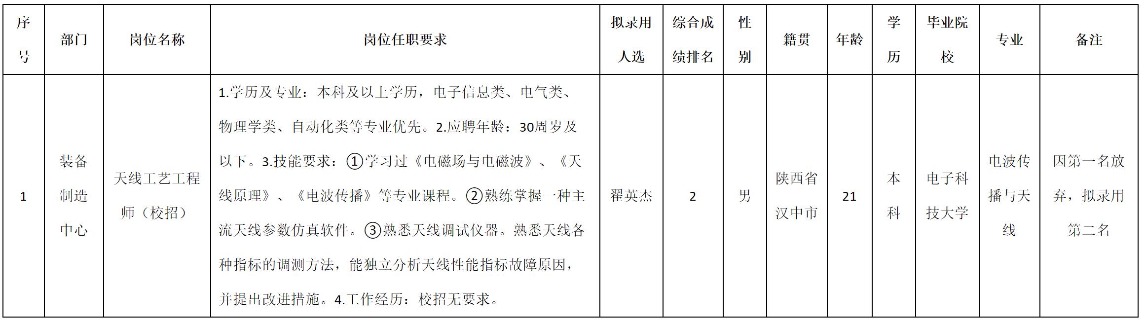 根據(jù)四川九洲電器集團(tuán)有限責(zé)任公司發(fā)布的招聘公告及招聘相關(guān)規(guī)定,經(jīng)測(cè)試、考察、體檢等程序,擬錄用翟英杰同志到四川九洲電器集團(tuán)有限責(zé)任公司工作,現(xiàn)予以公示,具體情況如下: