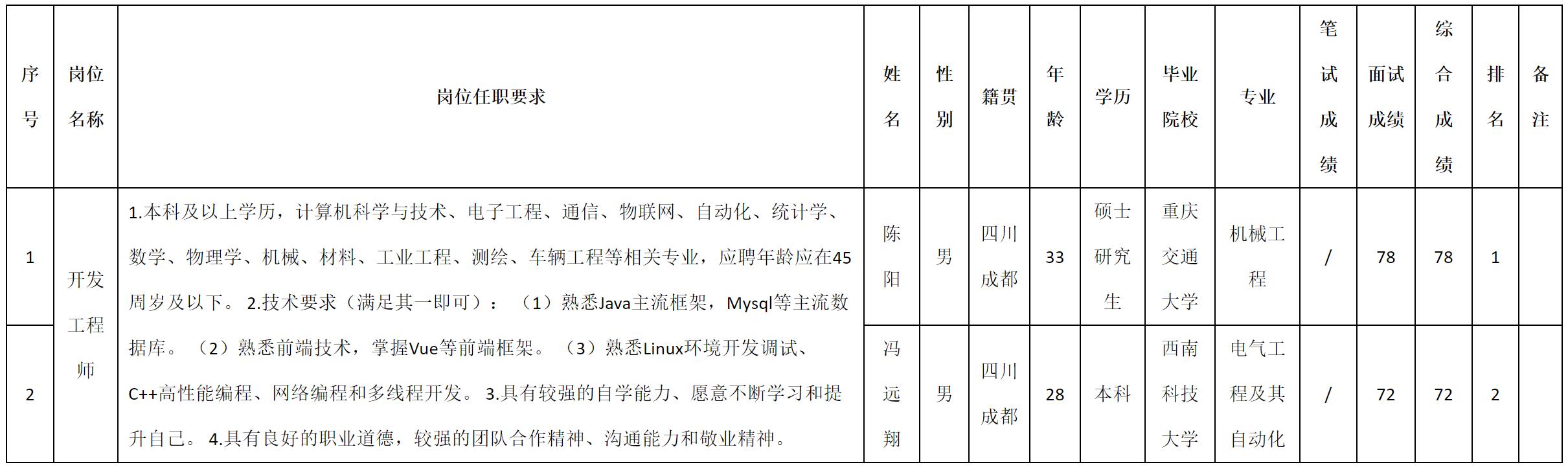根據(jù)四川九洲投資控股集團(tuán)有限公司軟件與數(shù)據(jù)智能軍團(tuán)發(fā)布的招聘公告及招聘相關(guān)規(guī)定,現(xiàn)將測試成績予以公示。