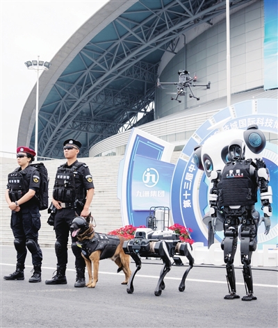 第十三屆科博會,安保警力協(xié)同警用機器狗、人形機器人等智能裝備“上崗執(zhí)勤”。視覺綿陽資料圖片