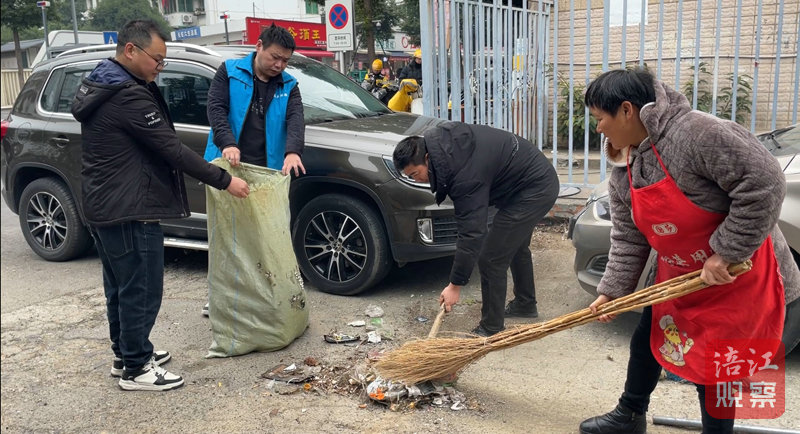 社區(qū)居委會(huì)組織網(wǎng)格員和周邊商戶開展集中清掃行動(dòng)