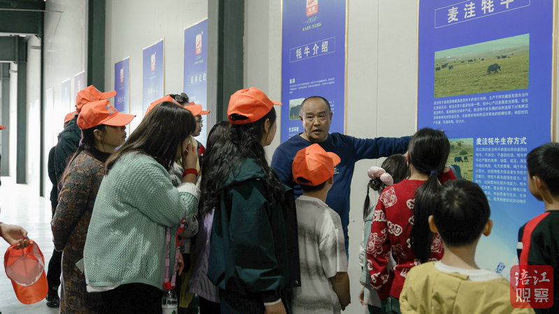 游客在紅原縣西部牦牛產(chǎn)業(yè)集團(tuán)進(jìn)行參觀。