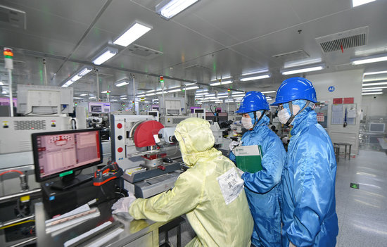 ▲國(guó)網(wǎng)金堂縣供電公司上門服務(wù)半導(dǎo)體企業(yè),助力企業(yè)開足馬力生產(chǎn)。(陳翔 攝)
