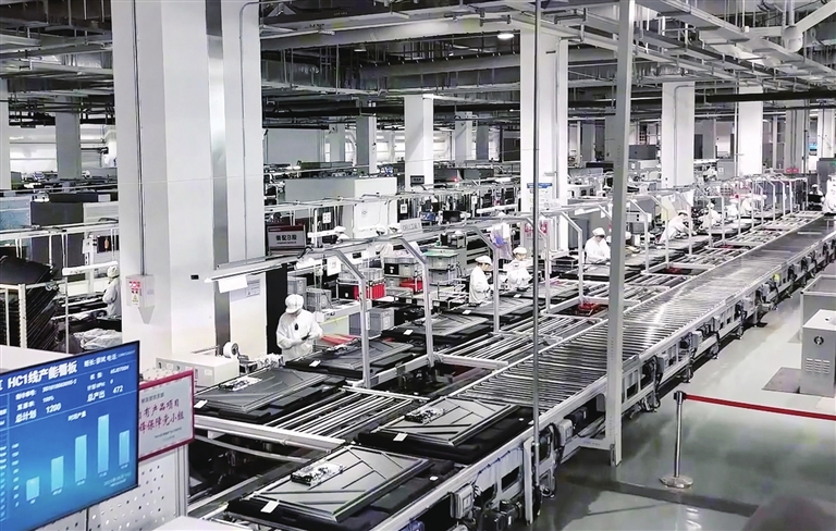 長虹智慧顯示工廠“5G+工業(yè)互聯(lián)網(wǎng)”生產(chǎn)線。 記者 魯文林 攝
