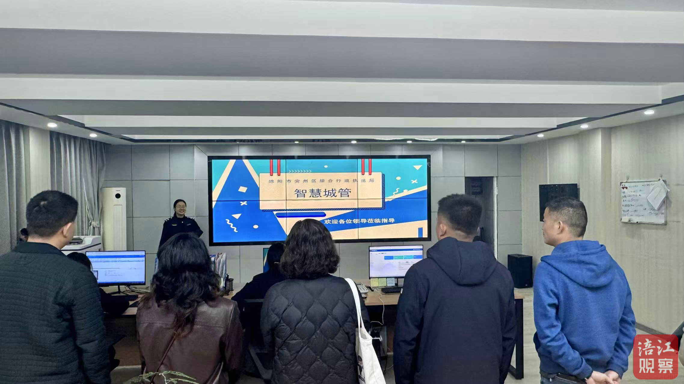 “城市智理”觀察員走進(jìn)安州區(qū)智慧城管中心。記者 蘭建春 唐韜 攝