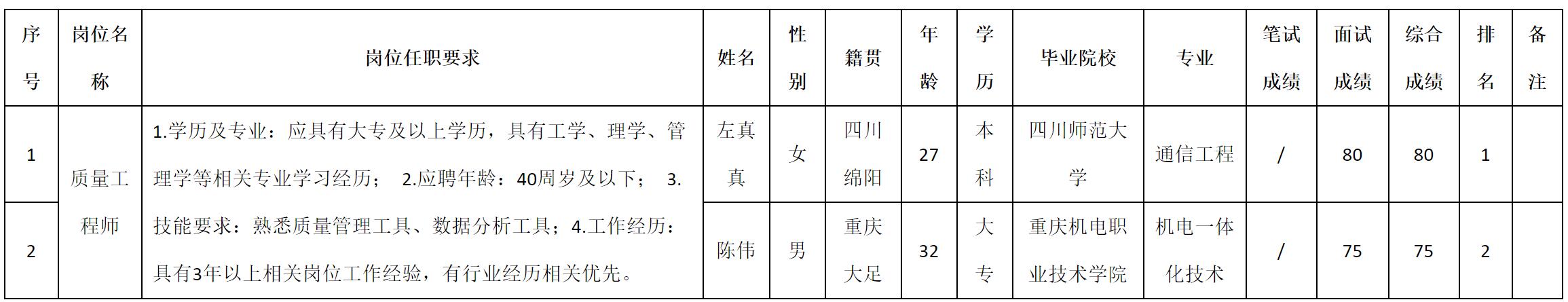 根據(jù)四川九華光子通信技術(shù)有限公司發(fā)布的招聘公告及招聘相關(guān)規(guī)定,現(xiàn)將測(cè)試成績(jī)予以公示。