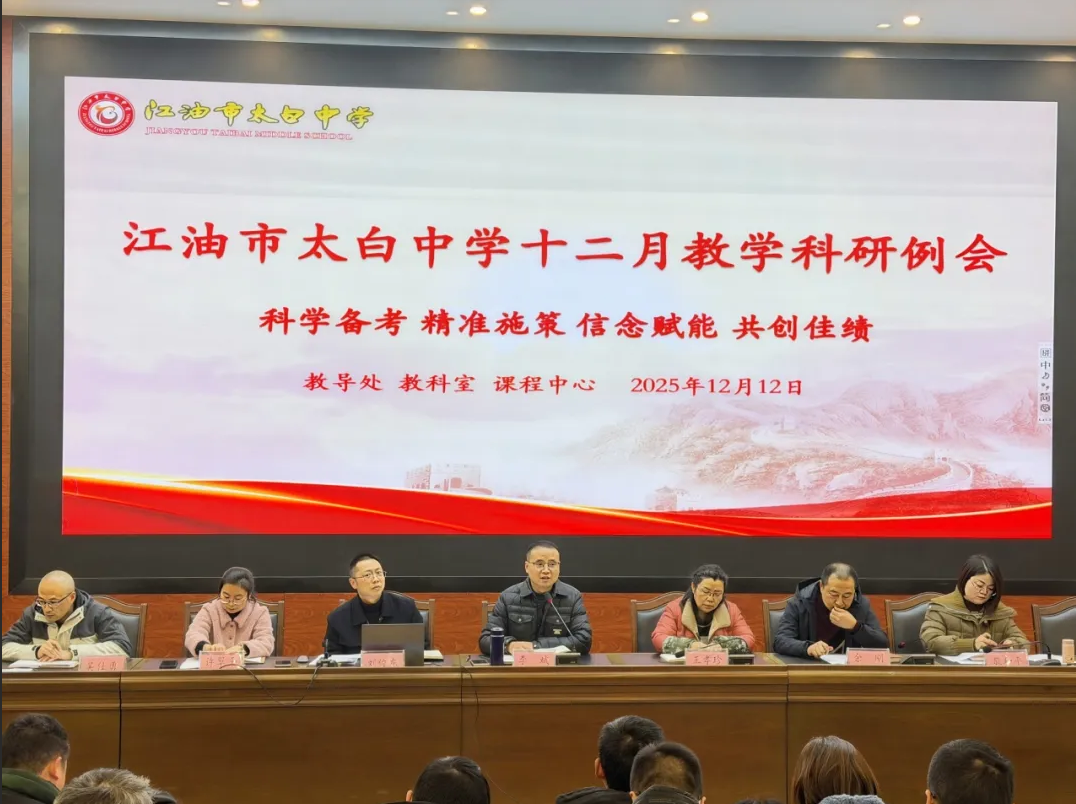 為了夯實教學(xué)根基,全力沖刺期末,近日,江油市太白中學(xué)召開了以“深耕教學(xué)強固根基 錨定目標(biāo)備戰(zhàn)期末”為主題的12月教學(xué)科研工作會,旨在明確任務(wù)、凝聚合力,推動教學(xué)質(zhì)量穩(wěn)步提升。會議由該校黨委副書記、副校長李斌主持,全體任課教師參會。