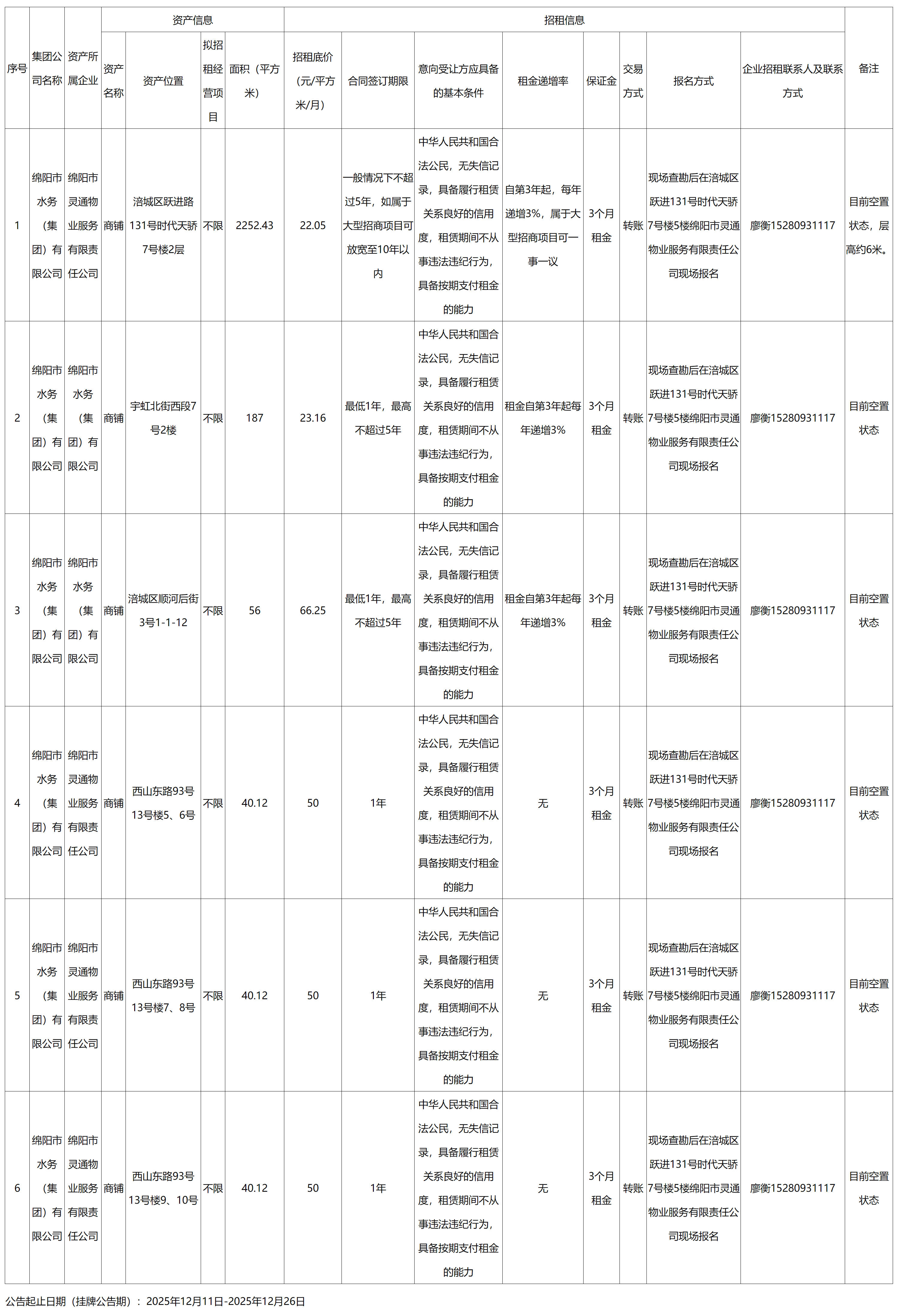 綿陽市水務(wù)(集團(tuán))有限公司資產(chǎn)出租公告