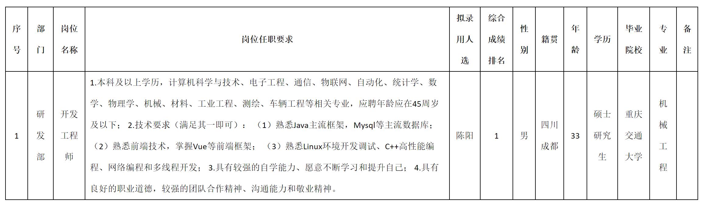 根據(jù)四川九洲投資控股集團(tuán)有限公司軟件與數(shù)據(jù)智能軍團(tuán)發(fā)布的招聘公告及招聘相關(guān)規(guī)定,經(jīng)測(cè)試、考察、體檢等程序,擬錄用陳陽(yáng)同志到四川九洲投資控股集團(tuán)有限公司軟件與數(shù)據(jù)智能軍團(tuán)工作,現(xiàn)予以公示,具體情況如下: