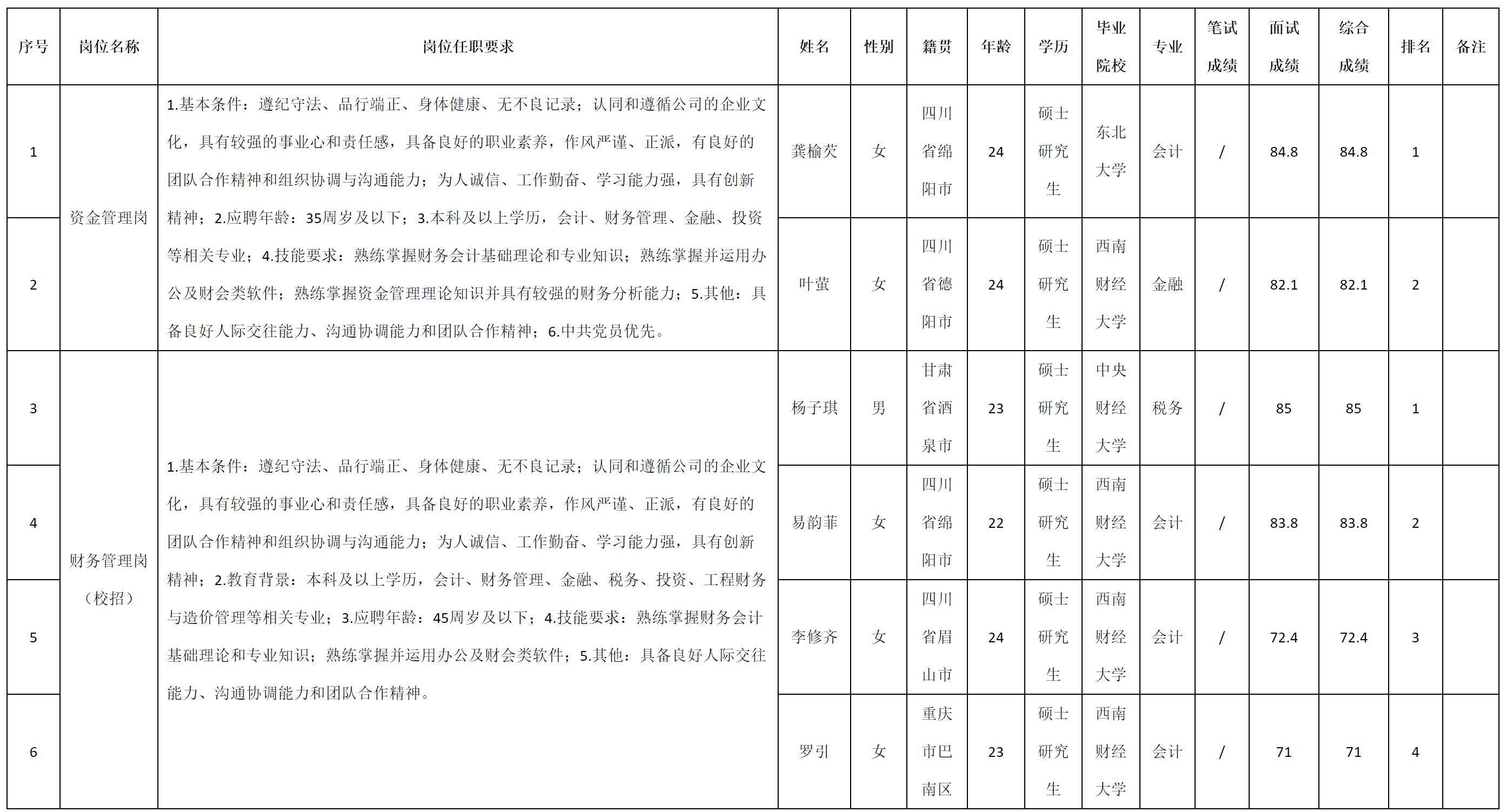 根據(jù)四川九洲投資控股集團有限公司發(fā)布的招聘公告及招聘相關(guān)規(guī)定,現(xiàn)將測試成績予以公示。