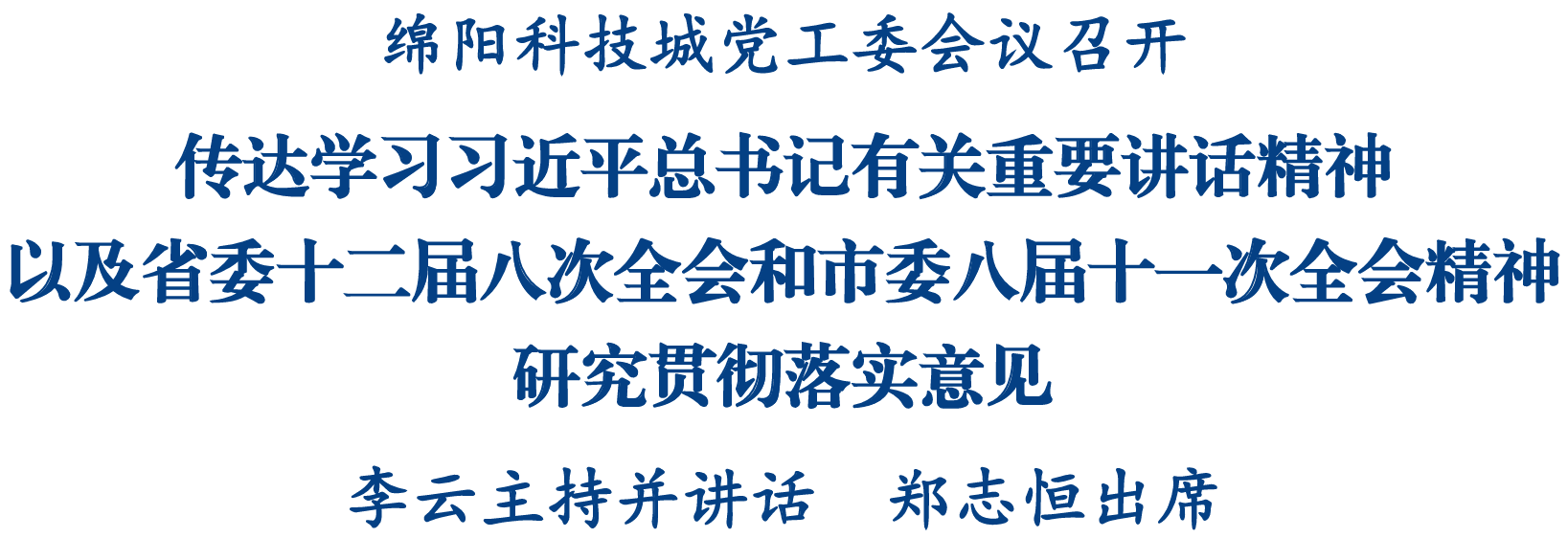 綿陽新聞網(wǎng)訊 12月16日,綿陽科技城召開黨工委會(huì)議,傳達(dá)學(xué)習(xí)習(xí)近平總書記有關(guān)重要講話精神,以及省委十二屆八次全會(huì)和市委八屆十一次全會(huì)精神,研究科技城貫徹落實(shí)意見。市委副書記、市長(zhǎng)、科技城黨工委書記李云主持會(huì)議并講話。