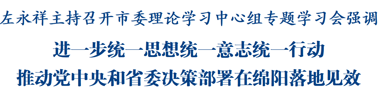 綿陽新聞網(wǎng)訊 12月16日,市委理論學(xué)習(xí)中心組舉行專題學(xué)習(xí)會,集中學(xué)習(xí)黨的二十屆四中全會和省委十二屆八次全會精神。省委常委、市委書記左永祥主持會議并談?wù)J識體會。他強調(diào),要深入學(xué)習(xí)領(lǐng)會黨的二十屆四中全會精神特別是習(xí)近平總書記重要講話精神,認真貫徹落實省委十二屆八次全會精神,進一步統(tǒng)一思想、統(tǒng)一意志、統(tǒng)一行動,推動黨中央和省委決策部署在綿陽落地見效。