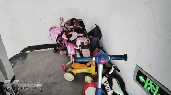 除了設(shè)施老化,日常管理中的“動態(tài)隱患”同樣突出。在位于涪城區(qū)的未來城小區(qū),盡管單元樓棟內(nèi)張貼著“消防器材禁止挪用”“禁止堵占消防通道”等類似提醒通知,但樓道內(nèi)雜物亂堆亂放的情況依舊屢見不鮮——有的業(yè)主將舊鞋柜靠在墻邊,有的則把紙箱、塑料玩具等堆在樓梯轉(zhuǎn)角,個(gè)別樓道的雜物甚至占了一半通行空間,居民上下樓需側(cè)身繞行。