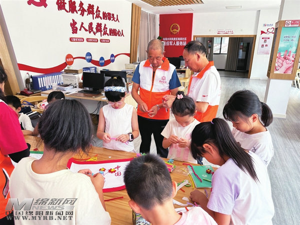 銀齡護(hù)苗老年志愿服務(wù)隊(duì)暑期教孩子做手工。 記者 曾云 攝