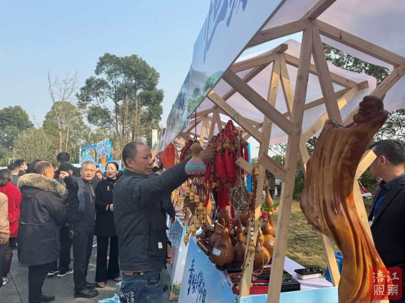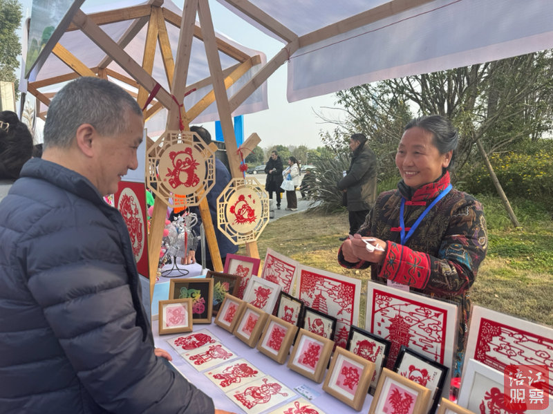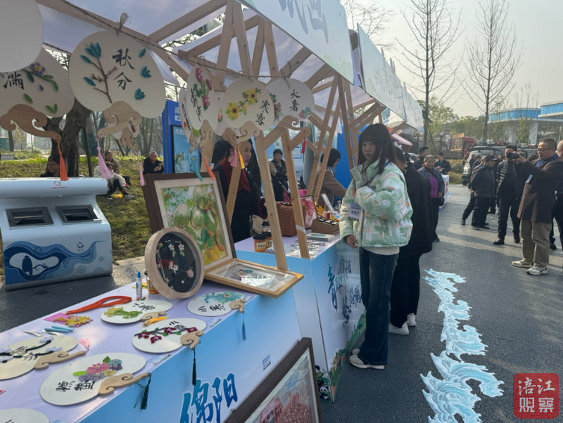 啟動儀式外,鄉(xiāng)村旅游嘉年華體驗區(qū)人頭攢動。剪紙攤前,一襲傳統(tǒng)服飾的女士靜守著滿架紅艷,風(fēng)來,剪紙上的熊貓、人物悄然輕曳,游客舉起“熊貓抱竹”,笑嘆“比照片鮮活多了”;葫蘆攤前,一位男士摩挲著刻有“錦繡天府”的大葫蘆,“烙畫、漆藝”橫幅下,木雕師傅正打磨“綠繞天府”主題木雕。