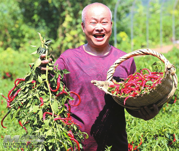 辣椒豐收,鹽亭縣農(nóng)民潘洪林笑開(kāi)顏。