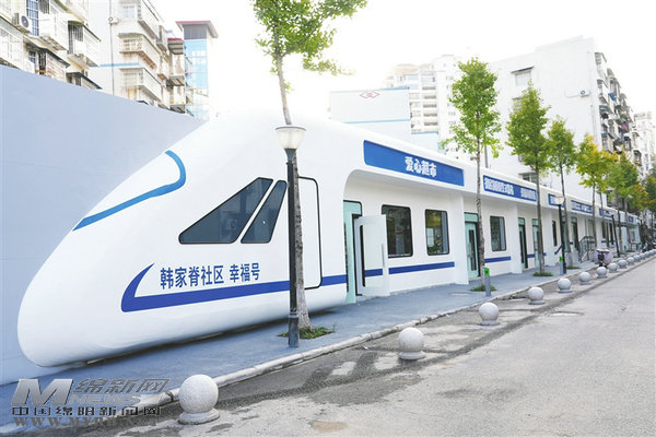 在社區(qū)“幸福里”車(chē)站廣場(chǎng),新改造的藍(lán)白色調(diào)的“韓家脊社區(qū)幸福號(hào)”列車(chē)煥然一新,愛(ài)心超市、家庭醫(yī)生工作站、愛(ài)心食堂等近10個(gè)功能區(qū)在“車(chē)廂”內(nèi)有序布局,讓居民在家門(mén)口就能享受到“一站式”便民服務(wù)。