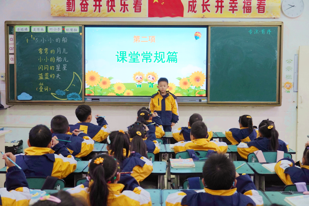 走進(jìn)一年級(jí)教室,整潔有序的環(huán)境處處體現(xiàn)育人用心。書(shū)包物品規(guī)范收納,文化墻各具特色,“好習(xí)慣成長(zhǎng)樹(shù)”等設(shè)計(jì)潛移默化地引導(dǎo)學(xué)生行為規(guī)范。